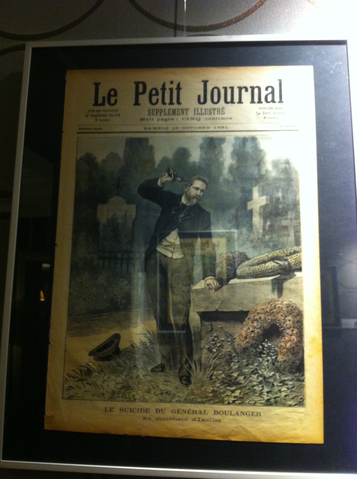 Ce que vient faire le patron de cet hôtel dans cette histoire? Très simple. Il accueille dans ses salons plus de 40 numéros et dessins originaux du Petit Journal, depuis la une sur le suicide du général Boulanger, sur la tombe de sa maîtresse, en Belgique, en 1891, en passant par les multiples attentats anarchistes de l'époque ou, bien sûr, ce qui était vendeur hier et l'est toujours aujourd'hui, de nombreux faits divers bien sanguinolents et croustillants.